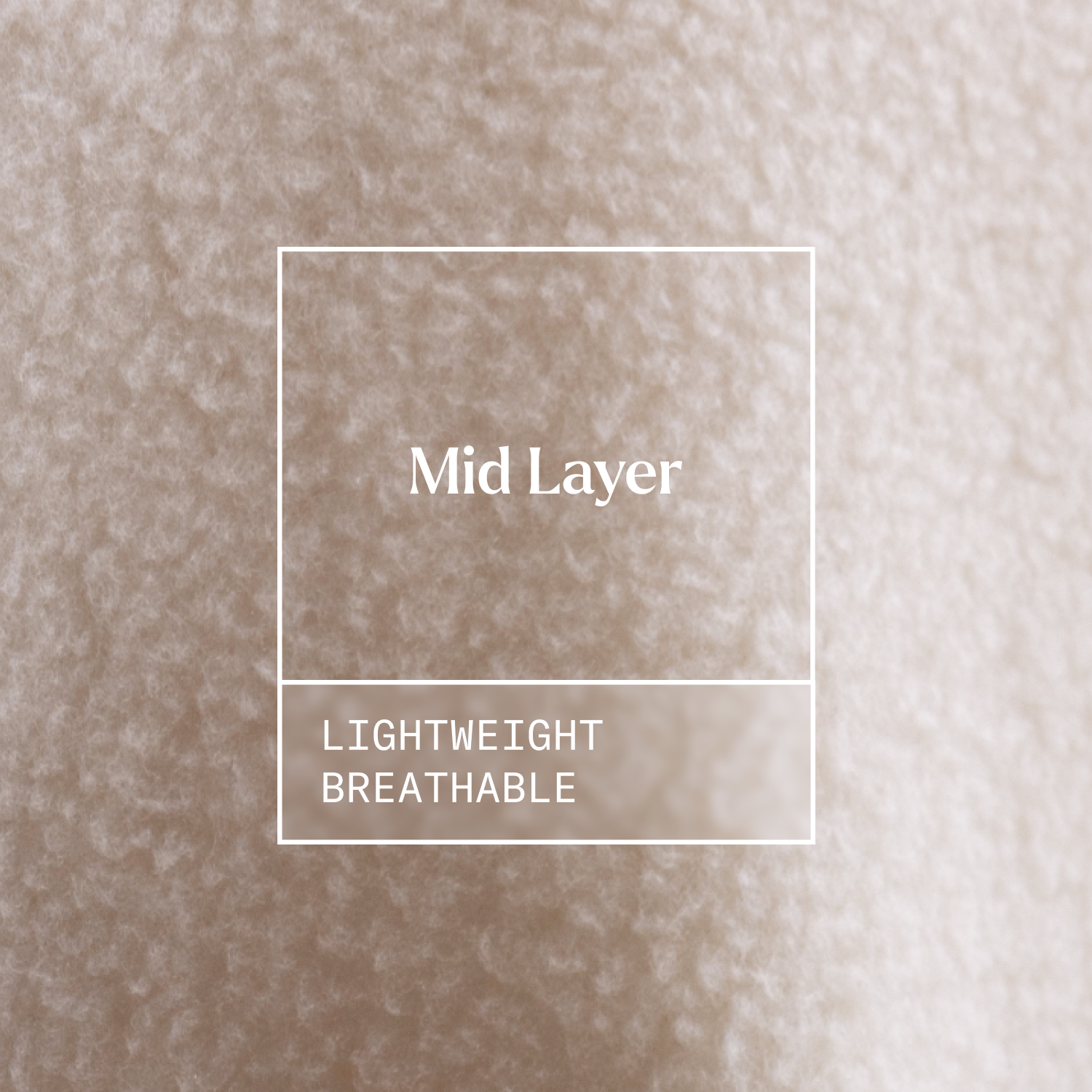 A midlayer sits between your baselayer and outer shell to trap body heat. Choose wool for natural warmth and breathability, fleece for lightweight, fast-drying comfort, or a lightweight puffer for extra warmth.