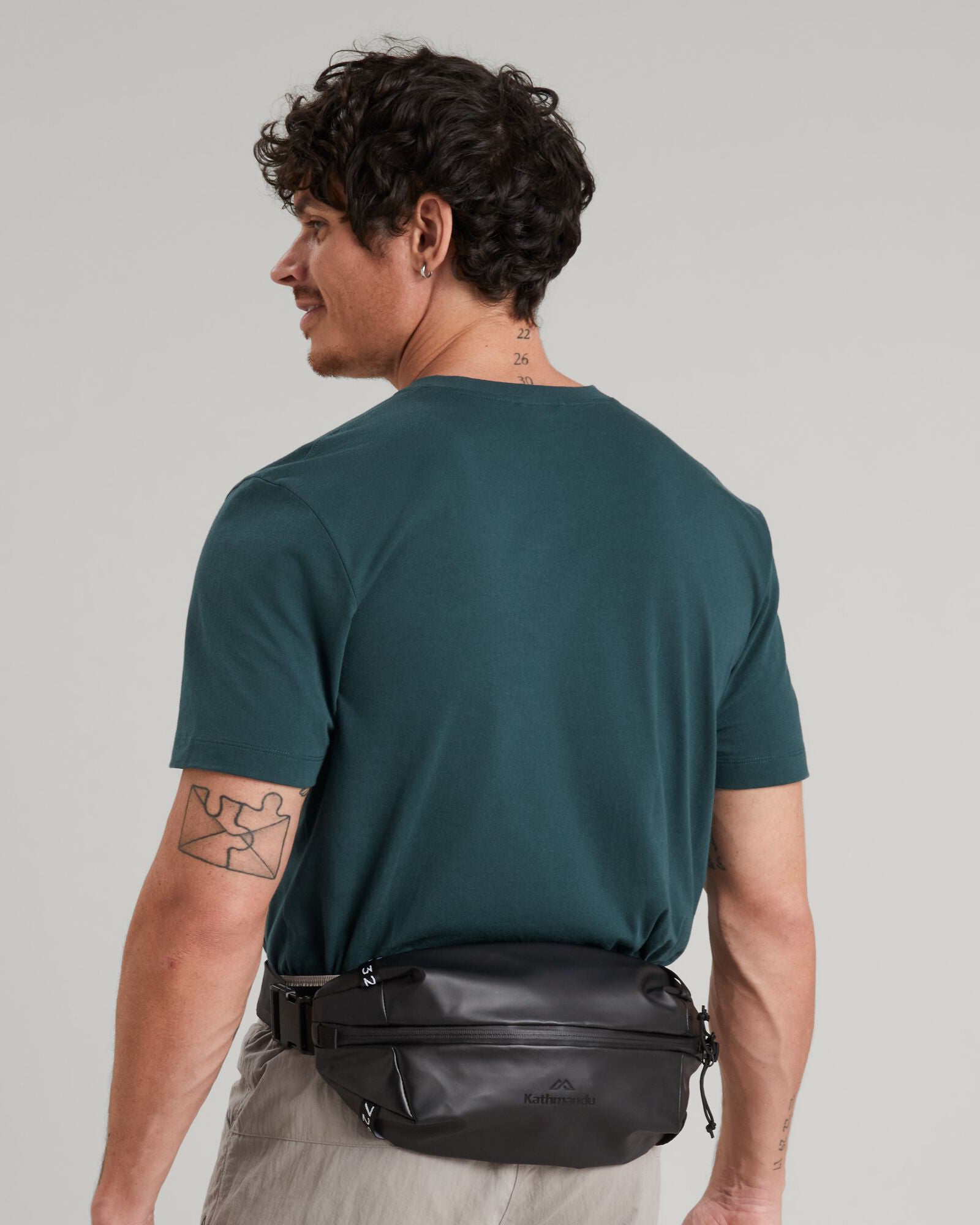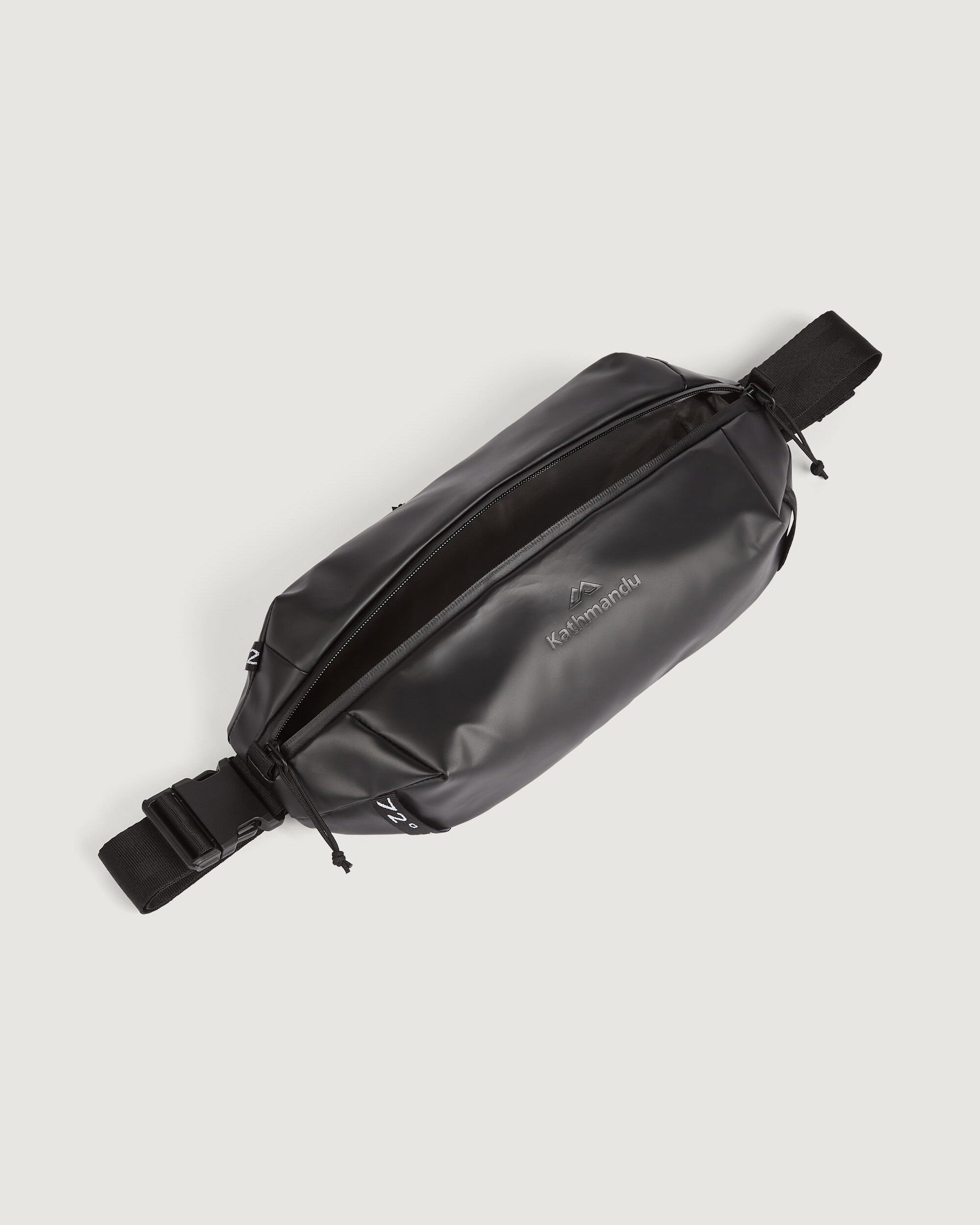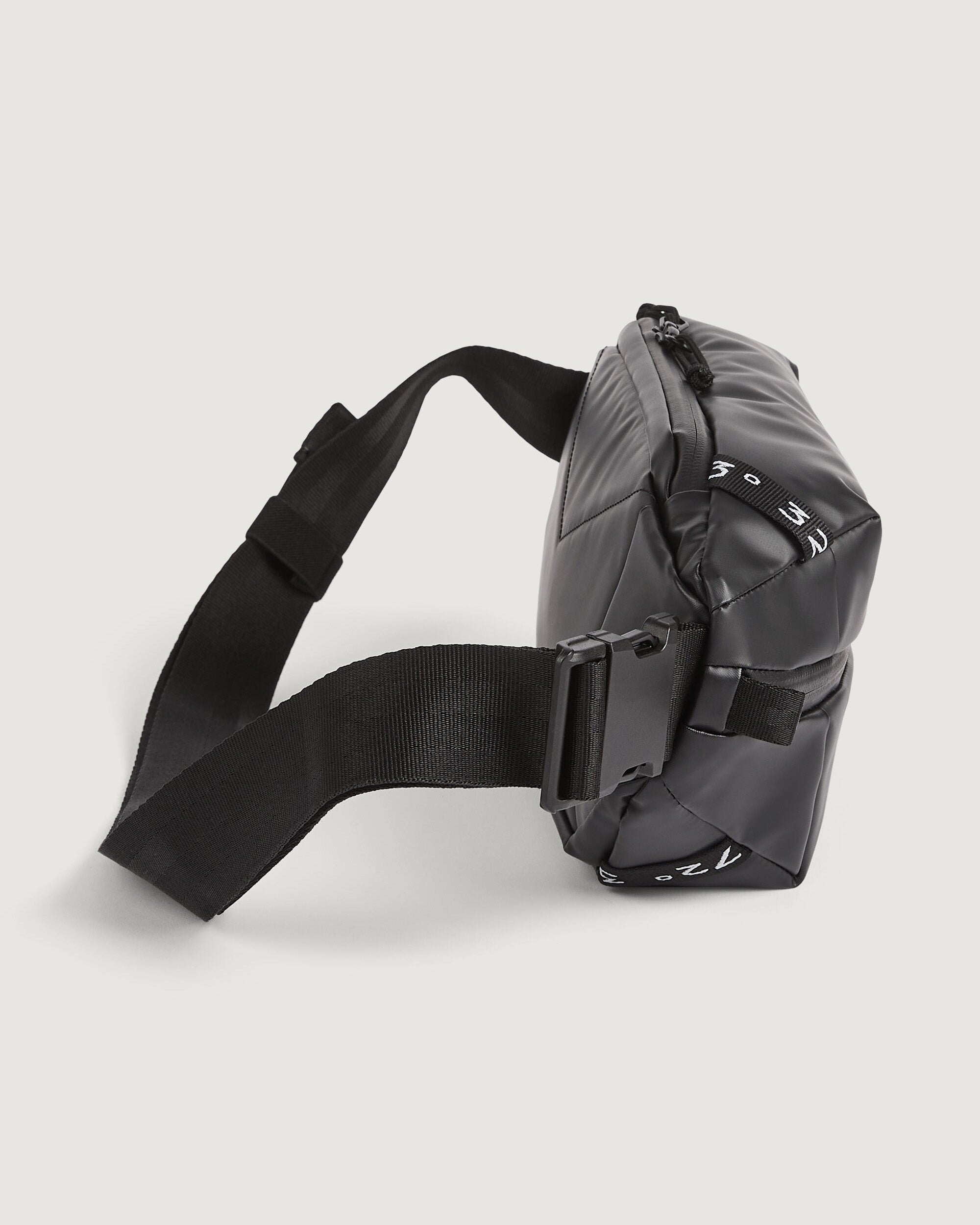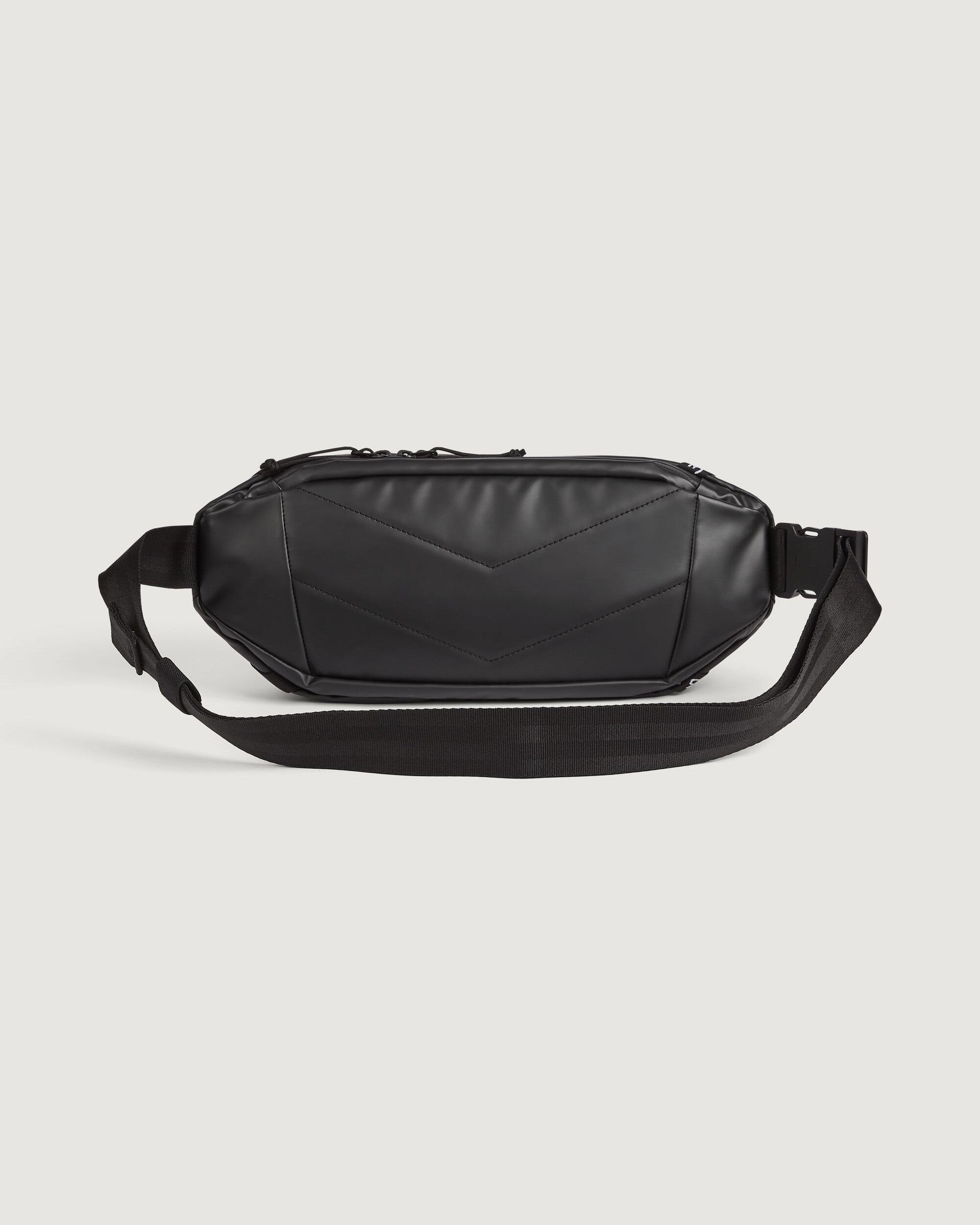 Versatile, water resistant, close-to-body bag featuring a 100% recycled main fabric.