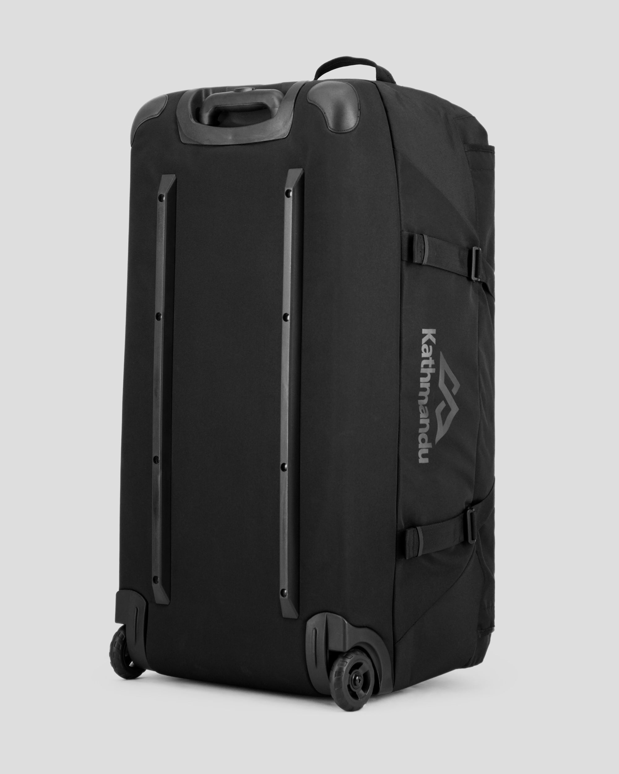 A durable check in suitcase designed for rugged travel and easy manouvering.
