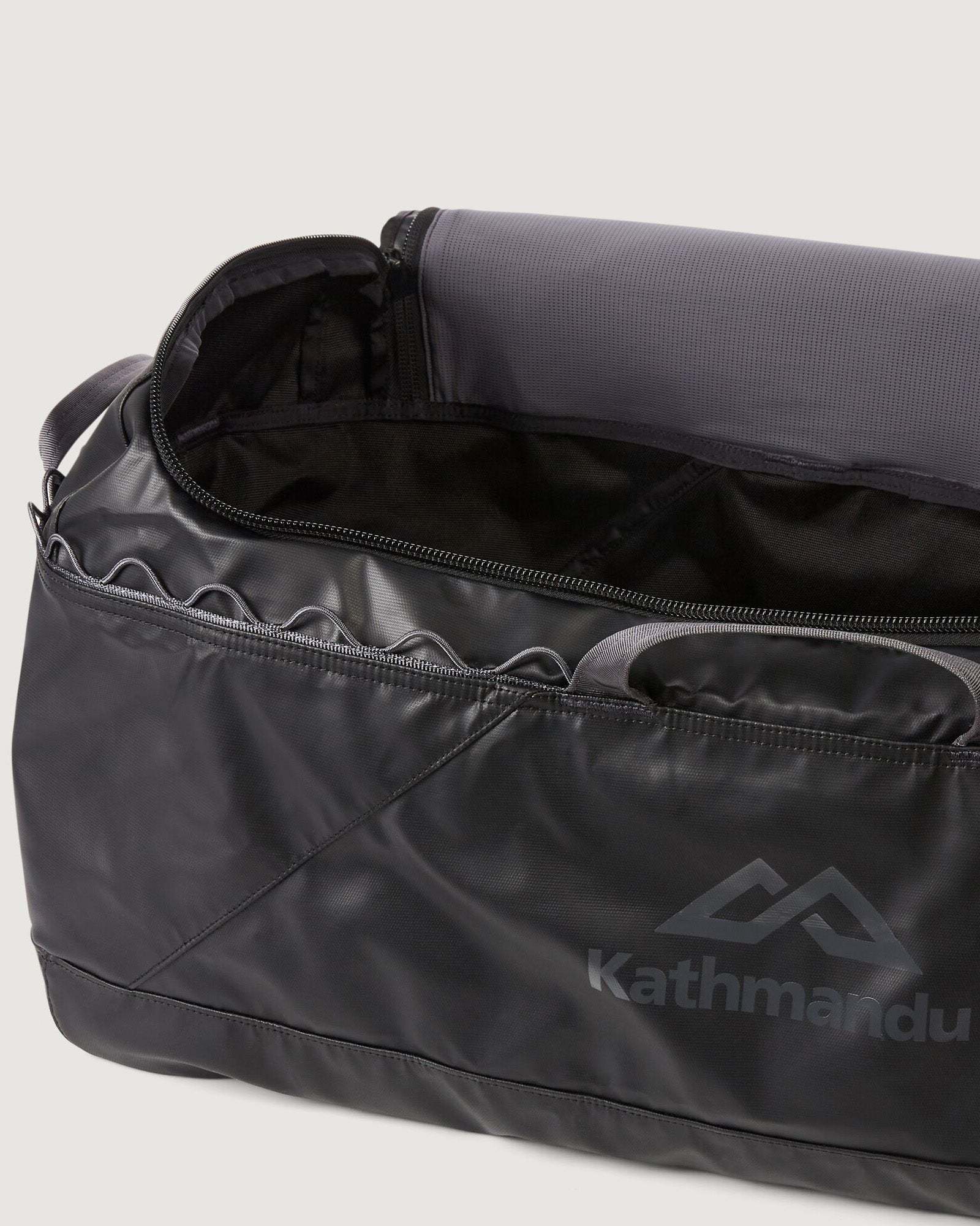 Flexible duffel bag with shoulder straps you can clip, tweak and fit β to wear your way.