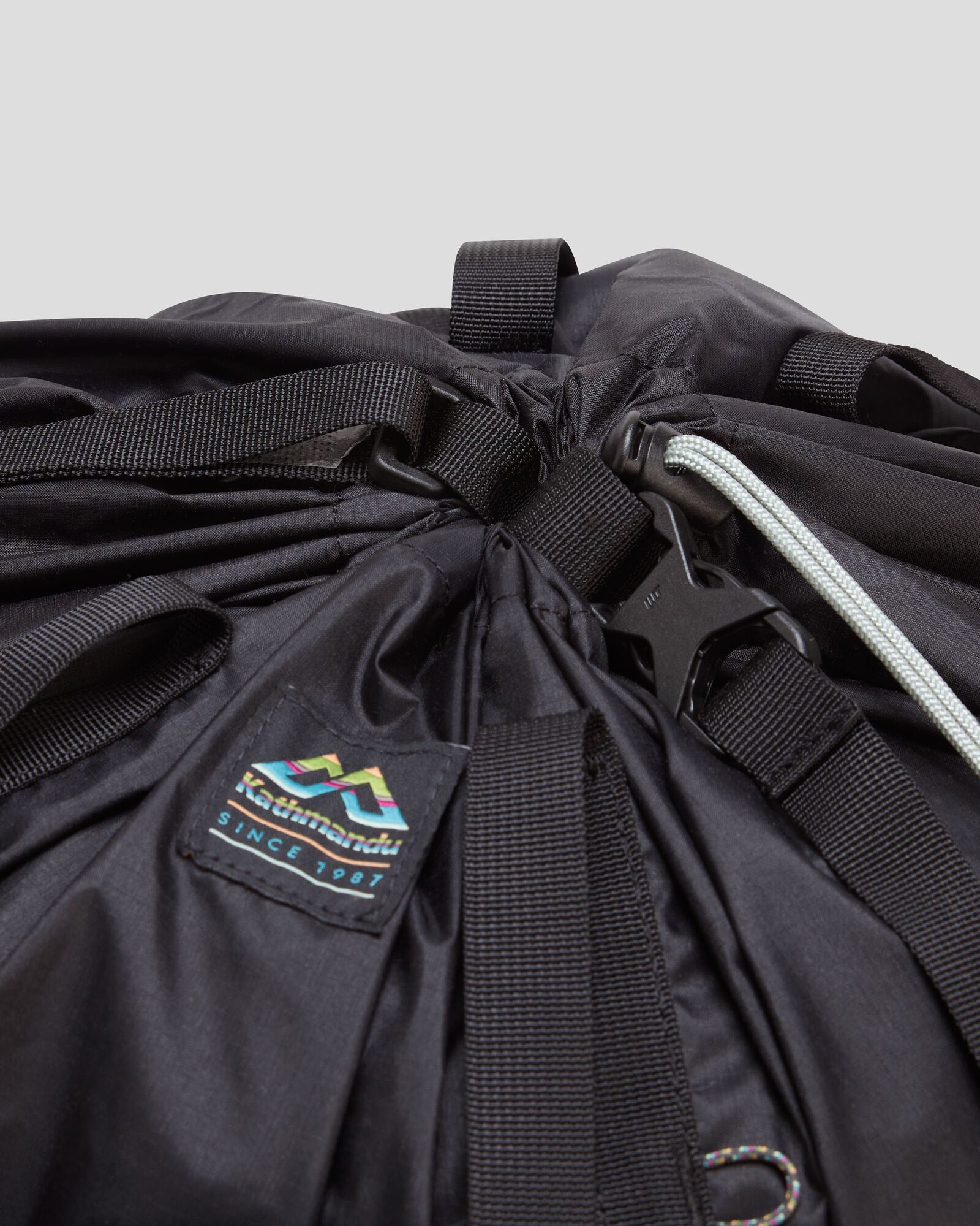 - Main fabric made from waste nylon materials including post-industrial plastic waste, textile waste, fishing nets, and marine debris.