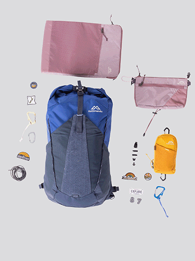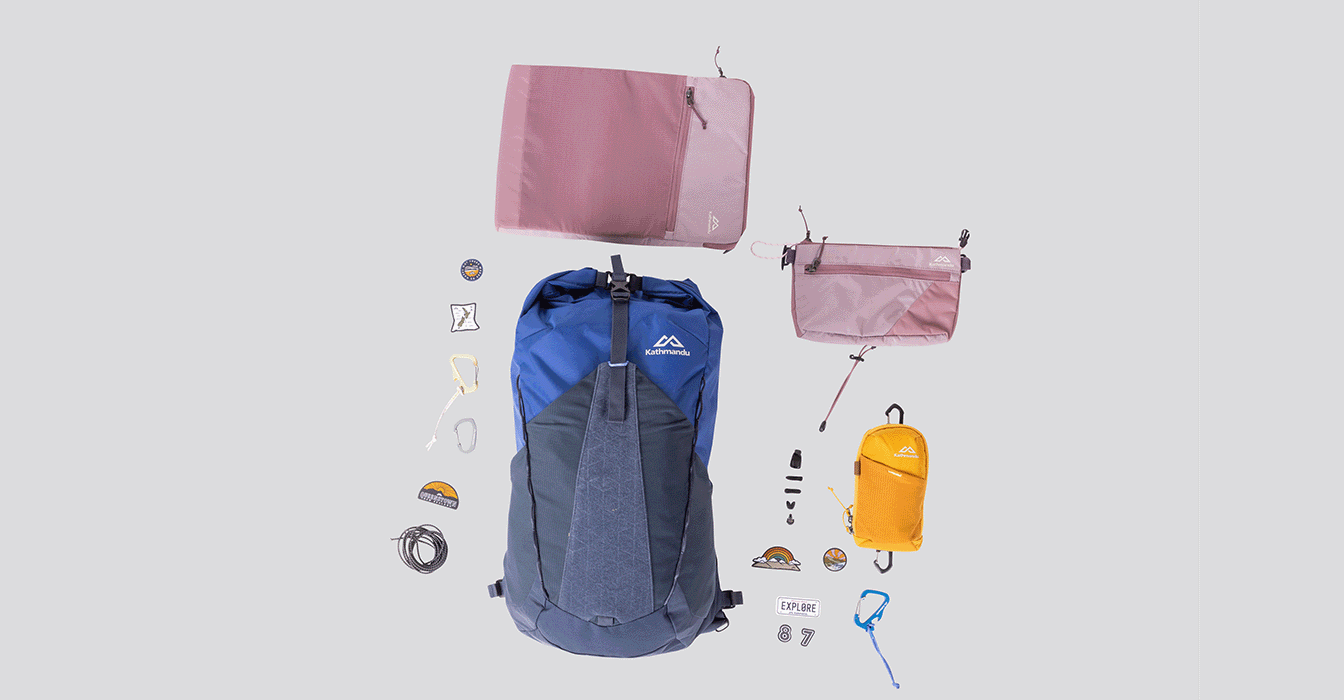 Choose your pack size and colour, then make it yours with pouches, cords, badges and carabiners – so your gear works for your adventure.